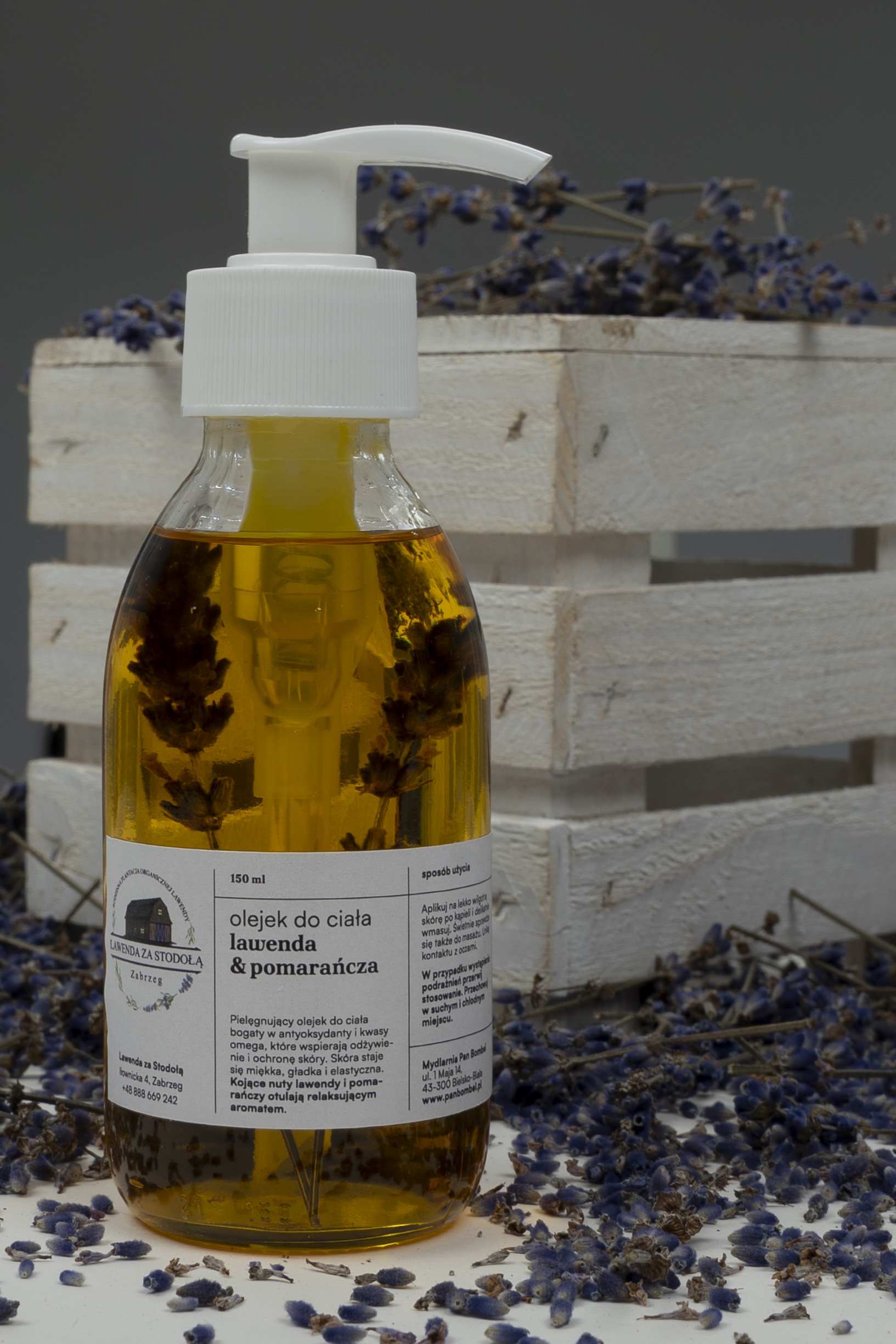 Olej do ciała lawenda-pomarańcza – ukojenie i zmysłowy relaks Złocista esencja, która otula skórę niczym ciepły, letni zmierzch na naszej plantacji. Gdy tylko rozprowadzisz olej dłońmi, poczujesz, jak napięcie dnia ulatnia się wraz z