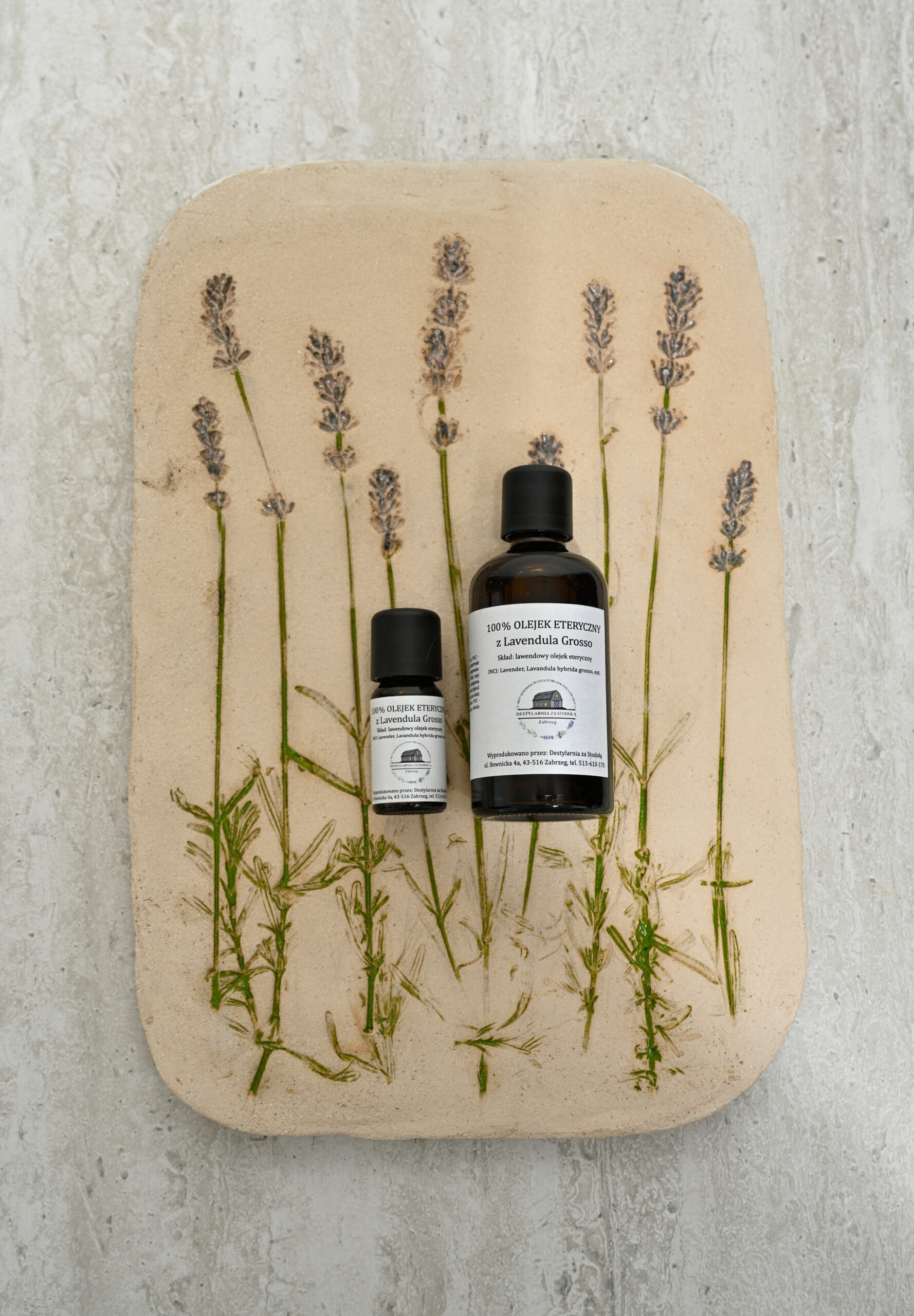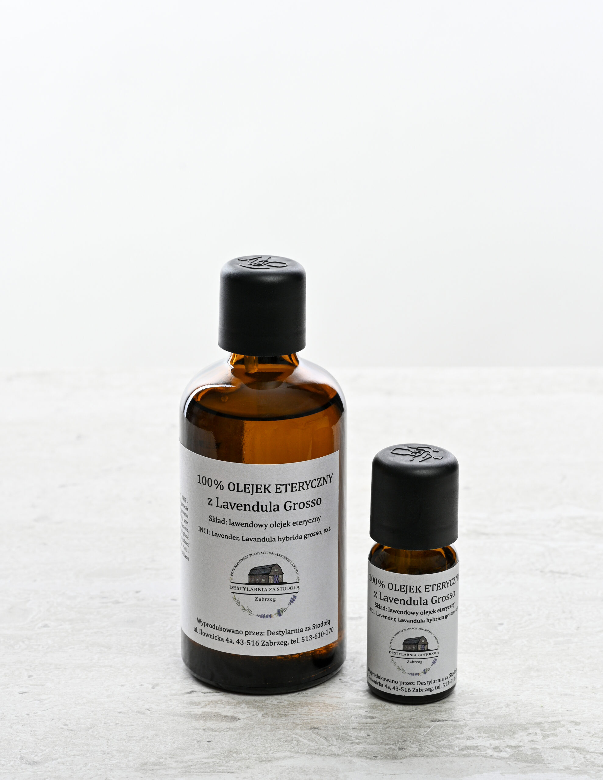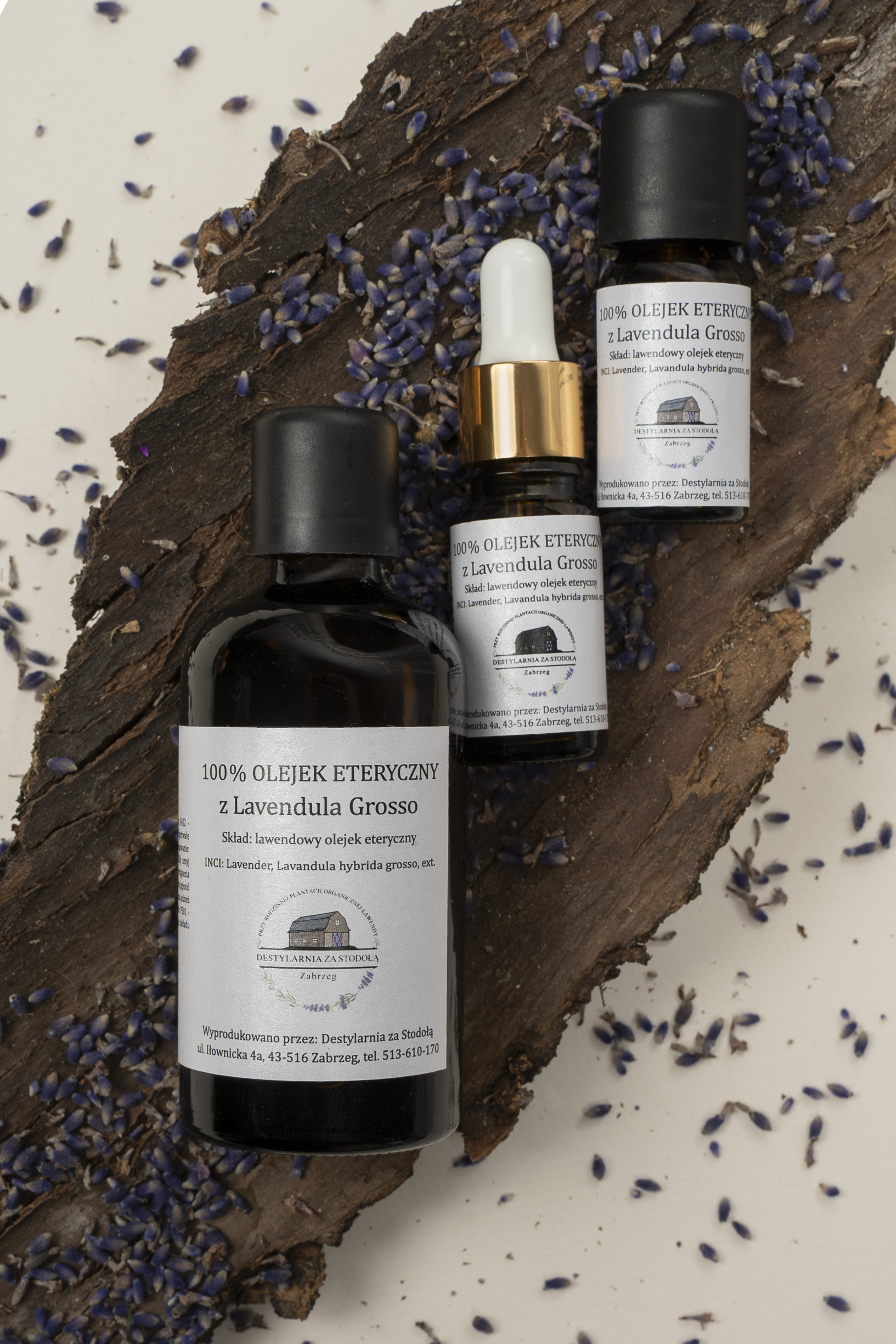 100% Olejek eteryczny Lawandyna Grosso – Lawenda pośrednia, to czysta esencja roślinna pochodząca z procesu destylacji wodno-parowej kwiatów lawandyny Grosso z Naszej Destylarni za Stodołą. Lawandyna Grosso to wyjątkowo wydajna i aromatyczna odmiana, która dzięki wyższej zawartości kamfory posiada bardziej intensywne, przenikliwe i ziołowe nuty zapachowe niż tradycyjna lawenda. Idealna na wycieczki do lasu, aby odstraszyć komary i kleszcze. Grosso króluje na naszej plantacji zajmując 40 długich dumnych rzędów, co daje obszarowo około 45% naszej plantacji.